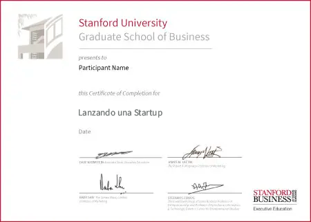 Una vez completado el programa recibirás un certificado de participación de Stanford Graduate School of Business.